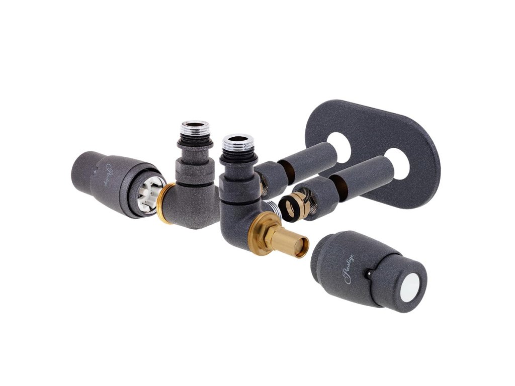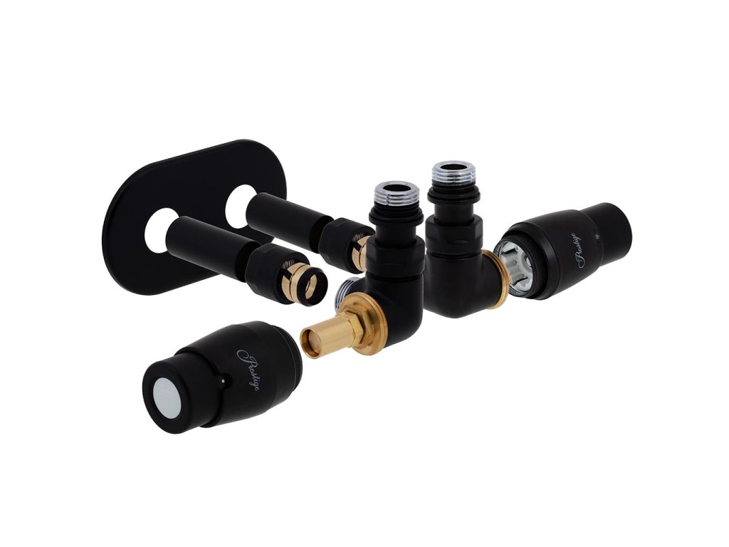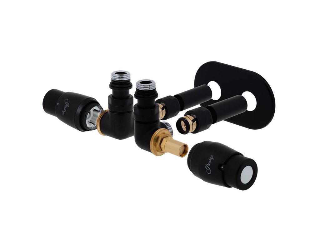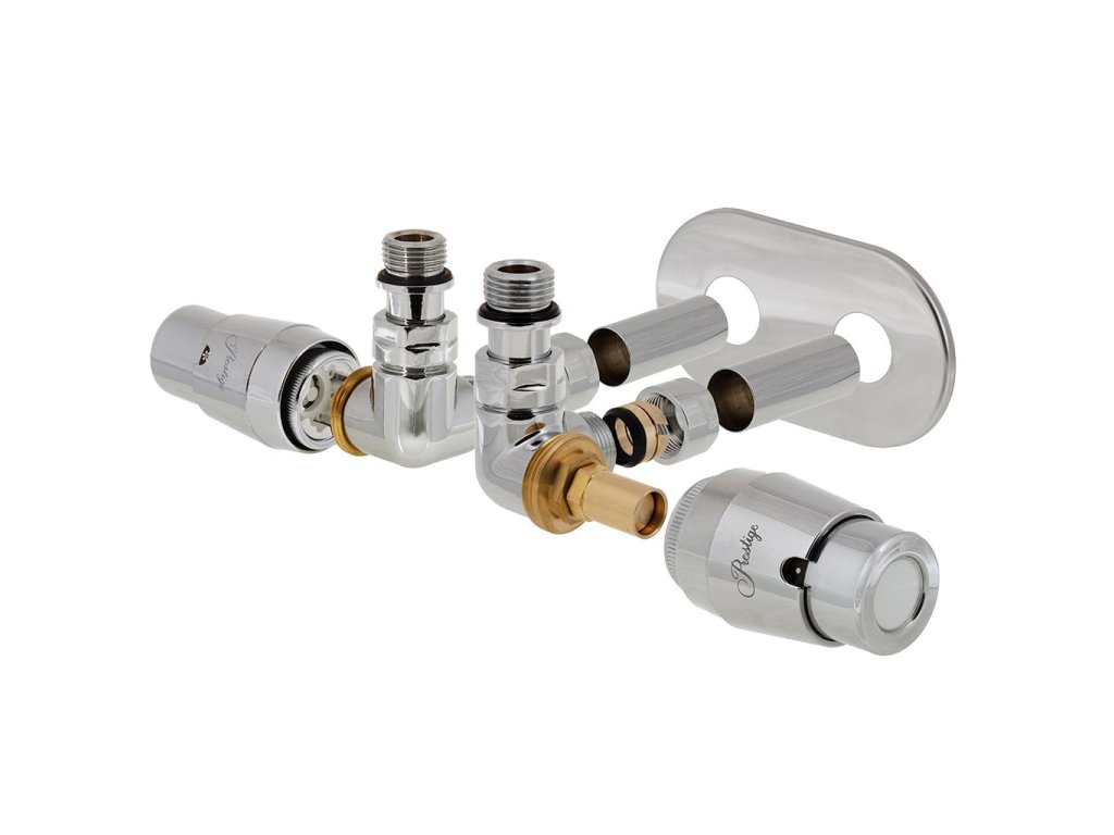 Designová kompletní sada středového ventilu Vision RTL se skládá ze dvou částí. První část obsahuje termostatický radiátorový ventil s termostatickou hlavicí Prestige, který se instaluje do přívodu a z RTL ventilu s termostatickou hlavici RTL, který se instaluje do zpátečky.