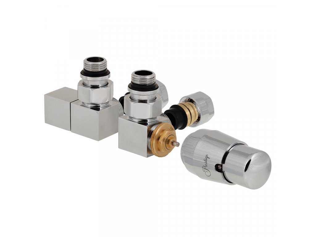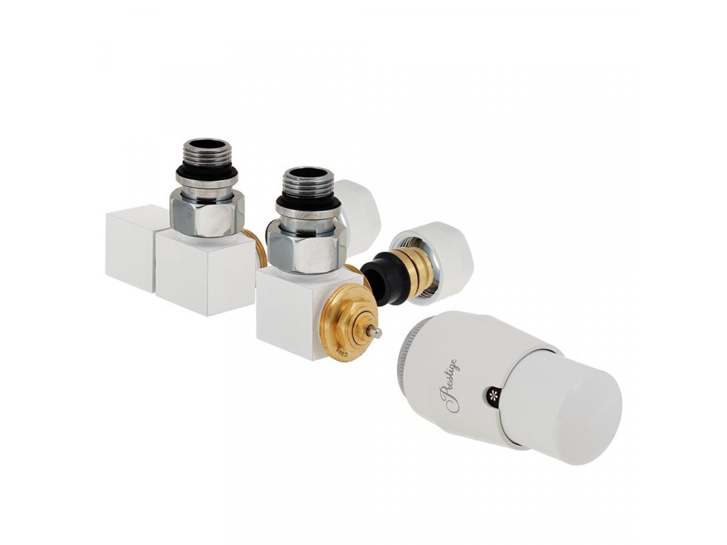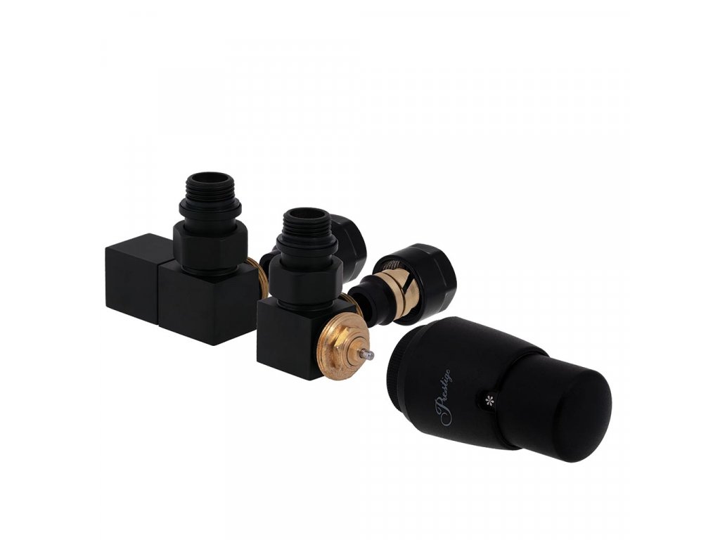 Základní sada termostatického ventilu Square je určena pro připojení koupelnového žebříku. Sada obsahuje vše, co potřebujete k montáži. Hranatý ventil má středové připojení (ventil je složený ze dvou kusů, není tedy podmínka rozteče 50 mm) se standardním závitem G½". Kompletní sada obsahuje ventil na přívod, vč. termostatické hlavice, regulační ventil na vrat a svěrné spojky. Svěrné spojky spojky jsou k dispozici na Pex-Al-Pex nebo CU, podle toho, jaké trubky využíváte pro rozvod vody.